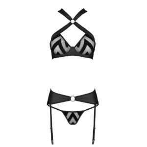 Сітчастий набір з візерунком: бюстгальтер з халтером, трусики та пояс для панчохи Hima Set black – Passion: